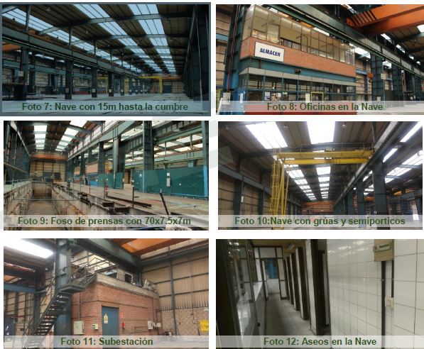 - HAY 2 GRÚAS POR NAVE DE 32 TON. Y ADEMÁS EN LA NAVE DE PRENSAS OTRA MAS DE 63 TON. EN TOTAL 7 GRÚAS PUENTE. ESTA EQUIPADA TAMBIÉN CON 3 GRÚAS